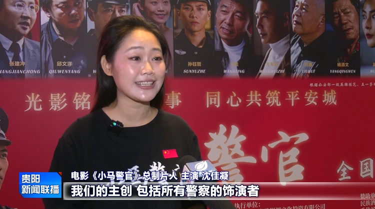 电影《小马警官》总制片人 主演沈佳凝:我们的主创,包括所有警察的饰演者,他们差不多在花溪生活了三个月,去派出所体验生活。在前期筹备的时候,我们的剧本也是改了一遍又一遍,就为了还原最真实的马金涛的故事。希望大家可以进电影院来看我们的电影,把这个故事传承下去,让更多的人能学习到他的精神,看得到他的故事。