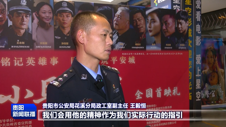 贵阳市公安局花溪分局政工室副主任王毅恒:看到电影首映以后,我的心情是非常激动的。作为马金涛的战友,我们会以他的精神作为我们实际行动的指引,引领我们在今后的工作中更好地为人民群众服务,更好地维护辖区的社会治安,守护一方安宁。