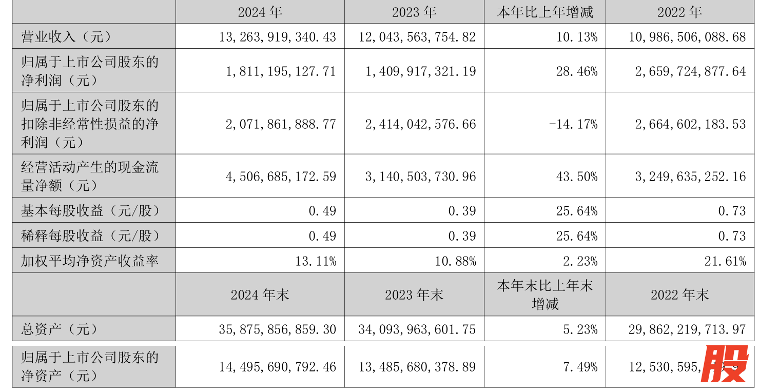 数据显示,2024年公司加权平均净资产收益率为13.11%,较上年同期上升2.23个百分点。公司2024年投入资本回报率为11.72%,较上年同期上升1.93个百分点。